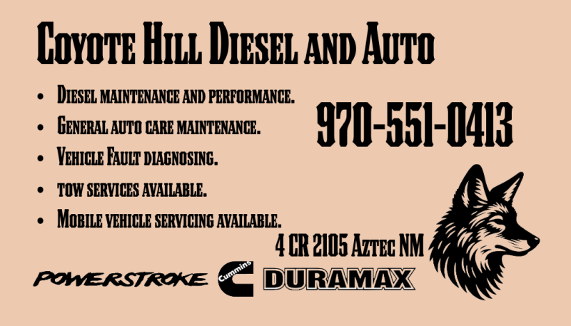 Coyote Hill Diesel and Auto provides top-quality auto repair services in San Juan and la plata county. We understand what you need: clear communication, efficient service, and exceptional workmanship. Trust us to get you back on the road with confidence.